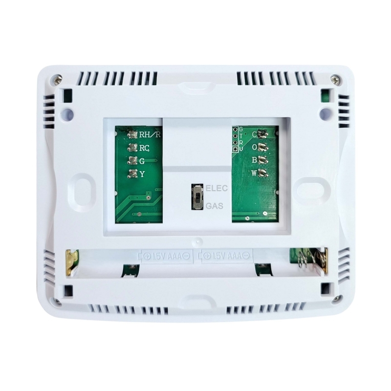 Установка этого проводного комнатного термостата проста, что делает его пригодным как для новых установок, так и для замены существующих термостатов. Его совместимость с традиционными системами и тепловыми насосами без дополнительного тепла упрощает процесс интеграции, экономя время и усилия при настройке. Кроме того, надежное проводное соединение обеспечивает стабильную связь с вашей системой отопления, вентиляции и кондиционирования, снижая риск проблем с подключением, обычно связанных с беспроводными термостатами.